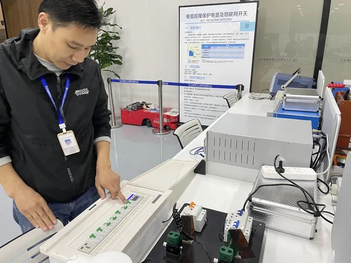 入驻中心的电弧故障保护电器(AFDD)项目组负责人、工程师波官勇正在做试验。